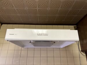 既存機種はナショナル製で、設置から約20年が経過しているレンジフードでした。長年の使用により内部のモーターが劣化し、完全に動作しない状態でした。