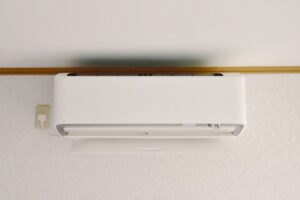 特に金沢市の梅雨時期から夏場にかけては、エアコン内部の結露が増えやすく、ドレンホースの詰まりや内部汚れが原因で水漏れが起こりやすくなります。 今回は壁紙張り替えを予定されていたため、そのタイミングに合わせてエアコン交換工事を行うことになりました。
